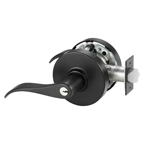 Grade 1 Entrance or Office Cylindrical Lock, G Lever, Conventional Cylinder, Black Suede Powder Coat Finish, Left Hand