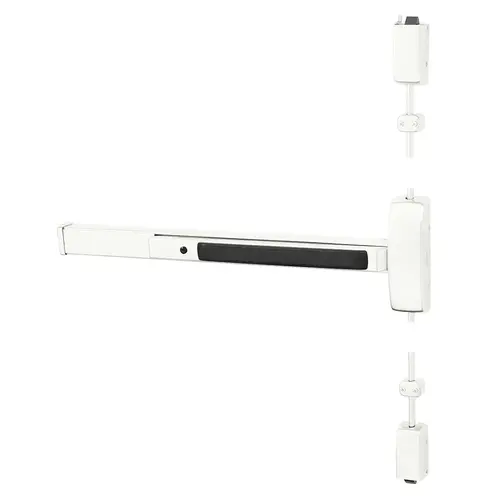 Grade 1 Surface Vertical Rod Exit Device, Wide Stile Pushpad, 36" Device, 120" Door Height, Storeroom Function, J Lever with Escutcheon, Flush End Cap, Hex Key Dogging, White Suede Powder Coat Finish, Right Hand Reverse