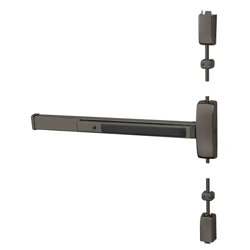 Grade 1 Surface Vertical Rod Exit Device, Wide Stile Pushpad, 36" Device, 120" Door Height, Storeroom Function, Flush End Cap, Hex Key Dogging, Oxidized Satin Bronze Relieved Clear Coated Finish, Left Hand Reverse