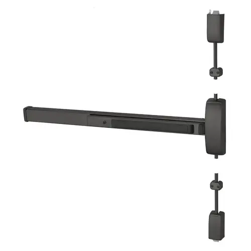 Grade 1 Surface Vertical Rod Exit Device, Wide Stile Pushpad, 42" Device, 120" Door Height, Device to Accept Electrified Trim Function, L Non-Keyed Electric Lever, Flush End Cap, Fail Secure, Hex Key Dogging, Black Suede Powder Coat Finish, Right Hand Reverse