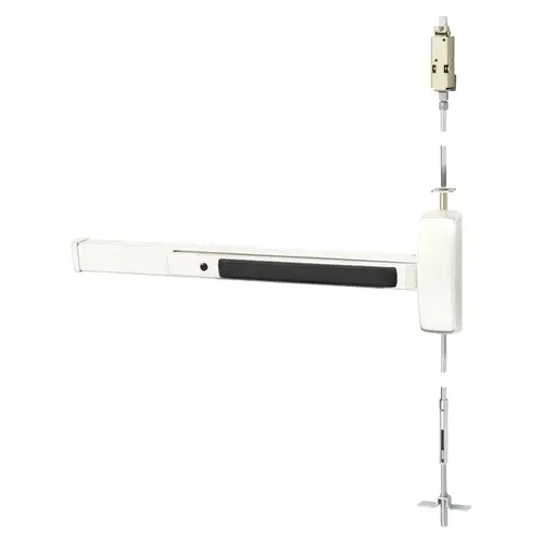 Grade 1 Concealed Vertical Rod Exit Device, Wide Stile Pushpad, 48" Device, 120" Door Height, Passage Function, Flush End Cap, Hex Key Dogging, White Suede Powder Coat Finish, Left Hand Reverse