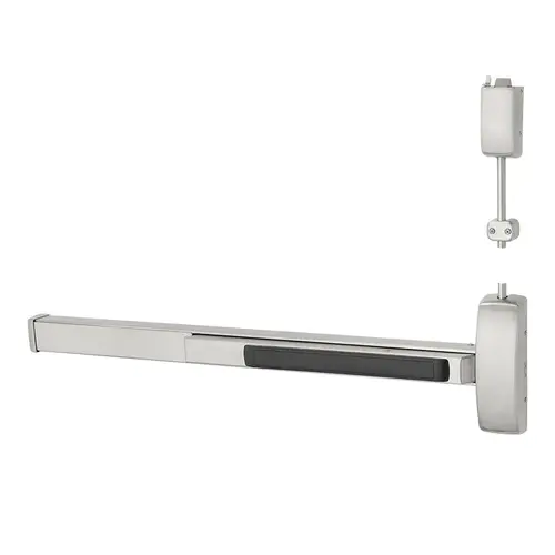 Grade 1 Surface Vertical Rod Exit Device, Wide Stile Pushpad, 42" Device, 84" Door Height, Device to Accept Electrified Trim Function, E Non-Keyed Electric Lever, Fail Secure, Less Bottom Rod, Flush End Cap, Electric Latch Retraction, Less Dogging, Satin Stainless Steel Finish, Right Hand Reverse