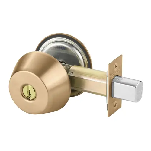 Grade 2 Single Cylinder Deadbolt, Conventional Cylinder, Interior Indicator Displays OUVERT/FERME, Green/Red, 2-3/4" Backset, Wood/Metal Strike, Satin Bronze Clear Coated Finish, Non-Handed, Field Reversible