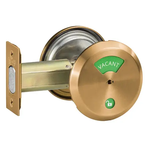 Grade 2 Thumb Turn x Indicator Deadbolt, Conventional Cylinder, Exterior Indicator Displays VACANT/OCCUPIED, Interior Indicator Displays UNLOCKED/LOCKED, Green/Red, 2-3/4" Backset, Wood/Metal Strike, Satin Bronze Clear Coated Finish, Non-Handed, Field Reversible