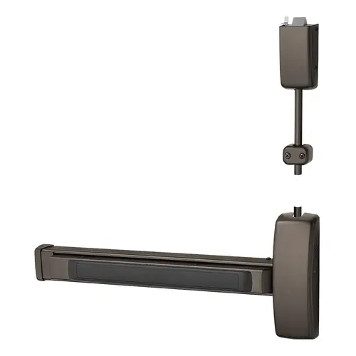 Grade 1 Surface Vertical Rod Exit Device, Wide Stile Pushpad, 32" Device, 84" Door Height, Device to Accept Electrified Trim Function, W Non-Keyed Electric Lever, Fail Secure, Less Bottom Rod, Electric Latch Retraction, Request to Exit Switch, Less Dogging, Dark Oxidized Bronze Finish, Left Hand Reverse