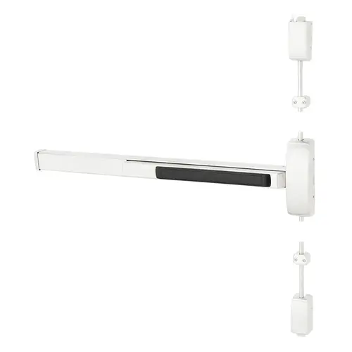 Grade 1 Surface Vertical Rod Exit Device, Wide Stile Pushpad, 48" Device, 120" Door Height, Storeroom Function, Electric Latch Retraction, Less Dogging, White Suede Powder Coat Finish, Left Hand Reverse