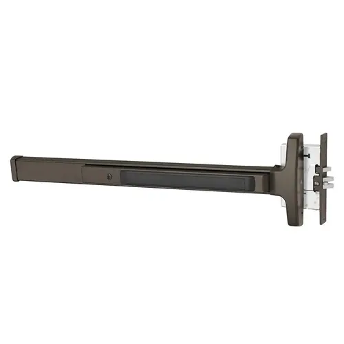 Grade 1 Mortise Exit Device, Narrow Stile Pushpad, 48" Device, Dummy Function, J Freewheeling/Vandal Resistant Lever, Hex Key Dogging, Dark Oxidized Bronze Finish, Right Hand Reverse