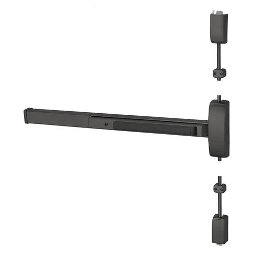Grade 1 Surface Vertical Rod Exit Device, Wide Stile Pushpad, 42" Device, 120" Door Height, Storeroom Function, Hex Key Dogging, Black Suede Powder Coat Finish, Left Hand Reverse