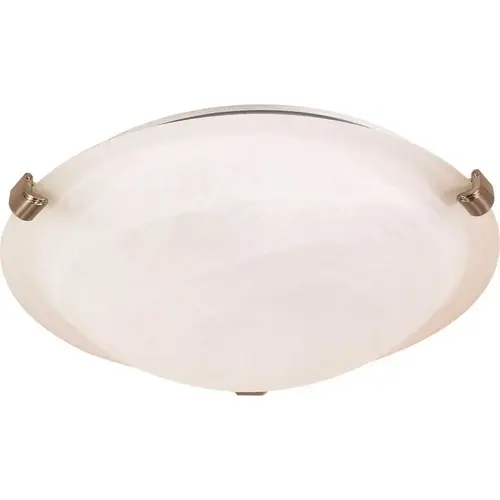 Satco Brushed Nickel 12 Tri Clip Flush Fixture. Transitional Style. Incandescent. A19. Medium Base. 1 Year Limited Warranty. Mfg #60/270
