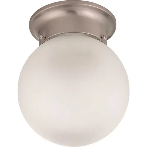 Satco Brushed Nickel 13W One-Light 6 Ball Ceiling With Lamp. Utility Style. Incandescent. A19. Medium Base. Mfg #60/3249