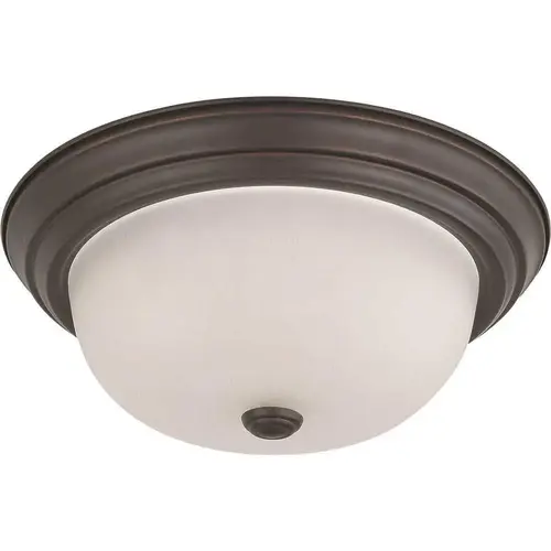Satco Mahogany Bronze Two-Light 13 Flush Mount 13 1/4 inch X 5 3/8 inch. Incandescent. A19. Medium Base. 1 Year Limited Warranty. Mfg #60/6011