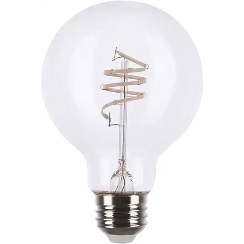 Satco Vintage 6 Watt G25 LED, Flex Gray Coil Filament, E26, 2700K,. Ultra-Clear Glass Bulb. Damp Location Rated. Dimmable. 360-Degree Beam Angle. Title 20. Mfg #S11522