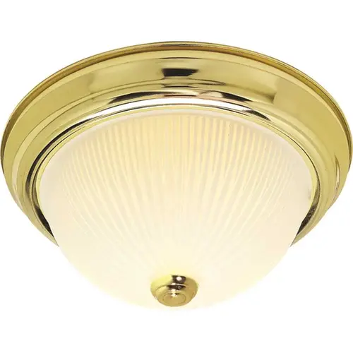 Satco Brass Two-Light 13 Flush Mount With Frosted Ribbed Glass. Traditional Style. Incandescent. A19. Medium Base. 1 Year Limited Warranty. Mfg #SF76/132