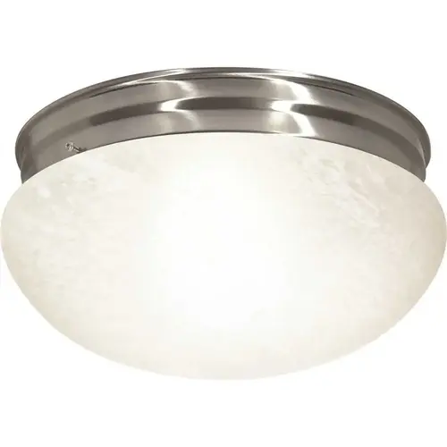 Satco Brushed Nickel Two-Light Large Mushroom Flush Mount. Traditional Style. Incandescent. A19. Medium Base. 1 Year Limited Warranty. Mfg #SF76/677