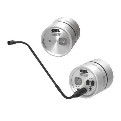 Different headset styles and other accessories are available. Select either the AC Plug-In Transformer Model, or the DC Rechargeable Battery Powered Model. Units are available as standard or bullet resistant models in satin or black anodized finishes.