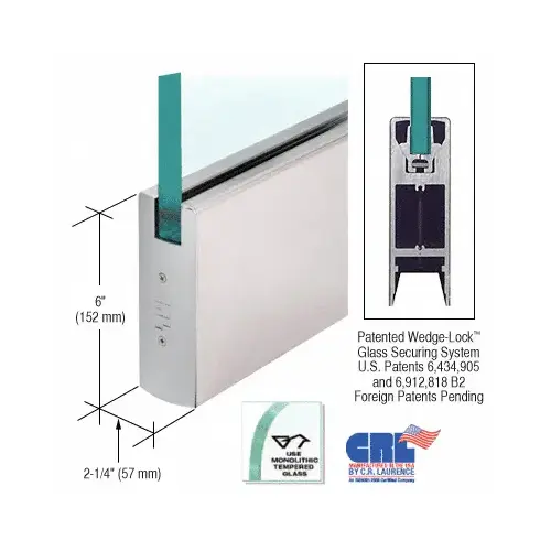 Other reasons to choose CRL Wedge-Lock Door Rail System: Models are available to accept 3/8" or 1/2" (10 or 12 mm) glass; a rigid single component housing that will not shift and fall out of adjustment over time because it is not made up of two halves; the internal components do not require removal before installation; the glass securing pads are designed for longevity in extreme environments.