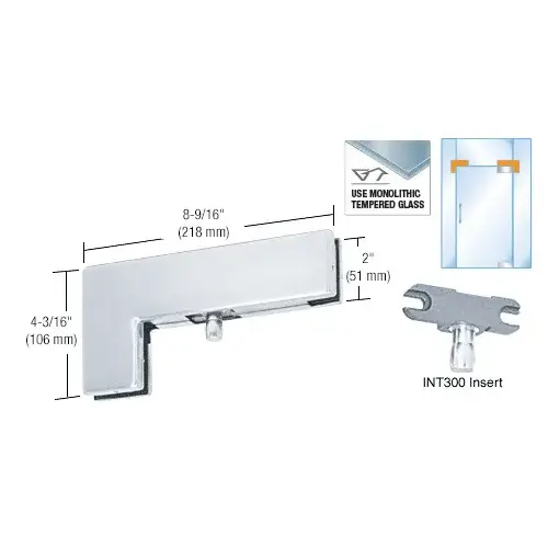 The CRL Sidelite Mounted Transom Patch is used to support a transom from a sidelite glass panel. It comes with a INT300 Insert for mounting a door with the CRL PH20A or PH21A Top Door Patch Fitting. The Insert can also be moved on the non-hinged side, allowing for a double swing door. A INT306 Transom Patch Door Stop Insert can be used to create a one way door. Also, a INT305 Transom Patch Keeper Insert can be installed for use with an AMR205 Lock when used for top of the door installation.