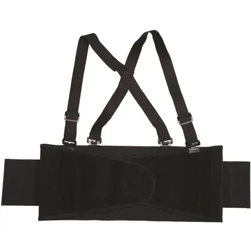 Do you suffer from strain and discomfort in your lower back, Do you wish that there was a preventative measure that could be taken to avoid future injuries, Cordova Safety Products presents a black back support belt with smooth glide adjustable clips and fully enclosed spring stays for flexible, contoured support. Allow its tapered abdominal support panels help protect your body as you stoop, bend and lift. Size: large (37 in. - 43 in.).