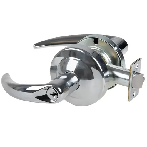Grade 2 Office Cylindrical Lock with Field Selectable Vandlgard, Omega Lever, Conventional Cylinder, Bright Chrome Finish, Non-handed