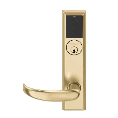 Grade 1 Schlage ENGAGE Series Wireless Mortise Lock, 2.4 GHz Bluetooth Low Energy Reader, Mortise Cylinder, Mobile Enabled Push Button and LED, 17 Lever, Addison Trim, Satin Brass Finish, Left Hand Reverse