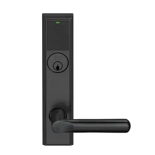 Grade 1 Schlage ENGAGE Series Wireless Mortise Lock, 2.4 GHz Bluetooth Low Energy Reader, Mortise Cylinder, Mobile Enabled Push Button and LED, 18 Lever, Addison Trim, Flat Black Coated Finish, Right Hand Reverse