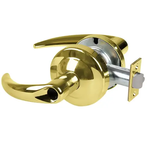 Grade 1 Accessible Storeroom Lock, Omega Lever, Less Cylinder, Bright Brass Finish, Non-handed