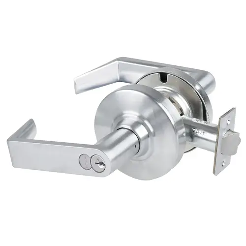 Grade 1 Vandlgard Double Cylinder Vestibule Cylindrical Lock, Indicator Rose "Locked" Rhodes, Rhodes Lever, FSIC Core, Satin Chrome Finish, Non-handed