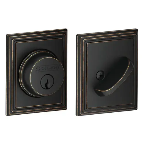 Grade 1 Single Cylinder Deadbolt, Century Trim, Conventional Cylinder, Triple Option Latch, Round Corner Strike with Reinforcer, Keyed Different, Antique Bronze