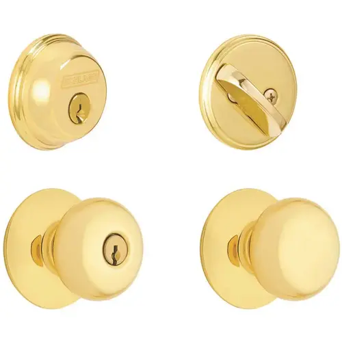 Single Cylinder Bright Brass Deadbolt Combo Pack