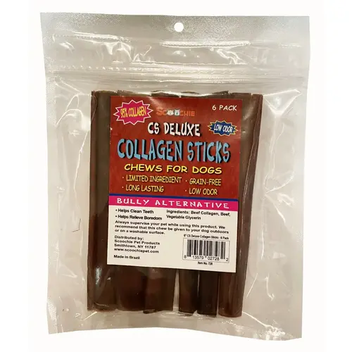 Scoochie Pet 728 6 Inch CS Deluxe Collagen Sticks 6 Pack in Zip Lock Bag