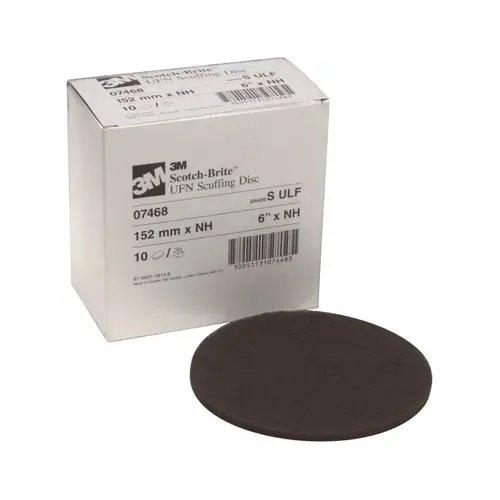 Scotch-Brite™ scuffing disc delivers a fast, consistent scuff for everyday surface preparation. It is ideal for cleaning parts and scuffing prior to staining and painting. The sharp cutting mineral and load-resistant web renders this disc a versatile tool for any workshop.
