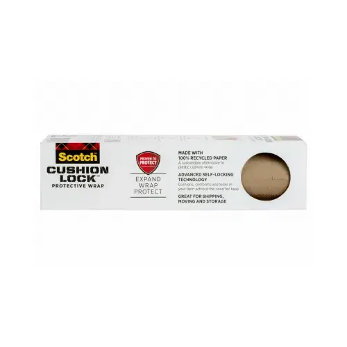 Scotch Cushion Lock Protective Wrap is a renewable alternative, expanding paper wrap that cushions, immobilizes, and conforms to your item for proven protection during shipping, moving, or storage. Now you can package your items with the confidence of protection without the guilt of plastic. A renewable alternative to plastic cushion wrap, Scotch Cushion Lock Protective Wrap is an expanding paper wrap that offers nested protection to immobilize your most precious of items while on the move, no matter how bumpy. It stores flat on the roll to help you save on storage space compared to those bulky plastic cushion wraps and expands 1.5X its original length so you can wrap more with less. When you want to pack with confidence, choose Scotch Brand.