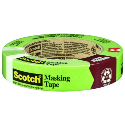Scotch masking tape for professional painting is designed with paper backing consisting of 30% post-consumer waste fibers. It is designed with a medium adhesion rubber-based adhesive and is ideal for masking trim and woodwork around the home, office and business. Scotch general painting masking tape is intended for general use around the home, office and business space. It offers exceptional conformability and best works on surfaces that are not easily damaged. The tape is easy to apply and removes cleanly for up to five days. It is also made from 30% post-consumer recycled fibers.