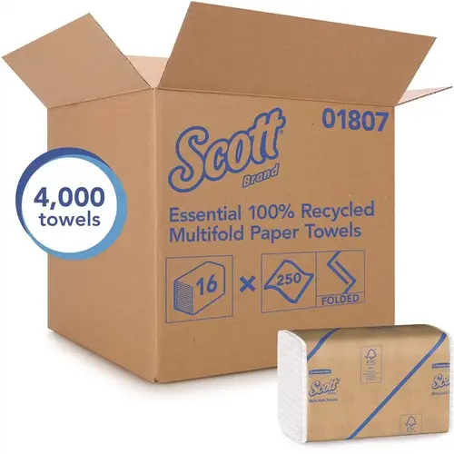 Scott Essential provides reliable balance of efficiency, performance and value. When your office restroom or kitchen needs commercial paper towels, Scott Essential 100% Recycled Fiber Multi-fold Paper Towels are an economical choice. They are made with 100% recycled fiber (RF), so you can feel good about choosing them for your business. Plus, they fit into any universal dispenser for trifold paper towels or multi-fold towels (which helps control over use). Made with a minimum of 40% post-consumer waste, Scott Essential folded paper towels meet EPA minimum standards and are FSC and Eco Logo certified, you know they're good choice for an economical paper towel.
