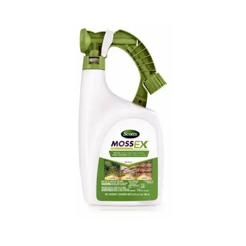 The fast-acting, Scotts 3-in-1 MossEX Ready-Spray kills moss, algae and lichens within hours. Use it on lawns, decks, patios, roofs and buildings. To apply, just attach a hose to the connected sprayer, turn on the water and spray. Won't stain concrete or other surfaces and can be used at any time during the year.