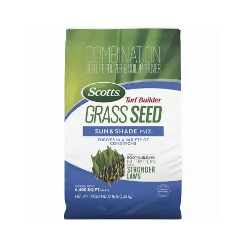 Scotts Turf Builder Sun and Shade Mix Grass Seed, 20 lb Net Content, Bag Container, Blue/Bluish-Gray, Fall, Spring Recommended Planting Time, 8000 sq-ft Coverage Area