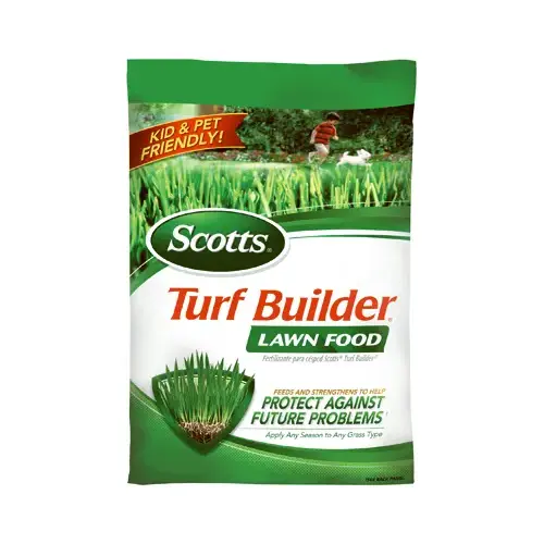 Scotts Turf Builder lawn food helps you to build a thick, green lawn. It's formulated with Scotts exclusive all-in-one particles to provide an even greening and feeding. Using Scotts Turf Builder lawn food thickens your grass to crowd out new weeds and strengthens your lawn to help protect it against future problems.
