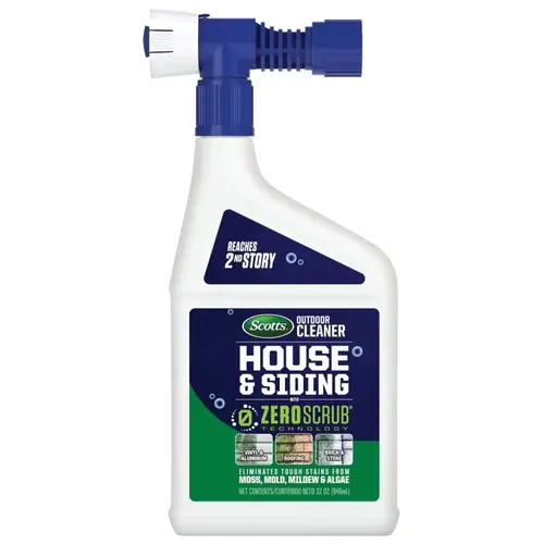 Nature can be harsh and messy, but your home's exterior doesn't have to be. With Scotts outdoor cleaner house and siding with ZeroScrub technology, your house and siding won't just get clean, they'll stay clean so you can enjoy your outdoors longer. Application is easy, just connect the bottle to your outdoor garden hose, point and spray on a calm, dry day. No power washing or scrubbing needed. It removes stains on vinyl, stucco, wood, composite wood, shingles, stone, cement, brick and many more surfaces. The beauty of your home's exterior will start to return in as little as 24 hr with Scotts outdoor cleaner house and siding with ZeroScrub technology.