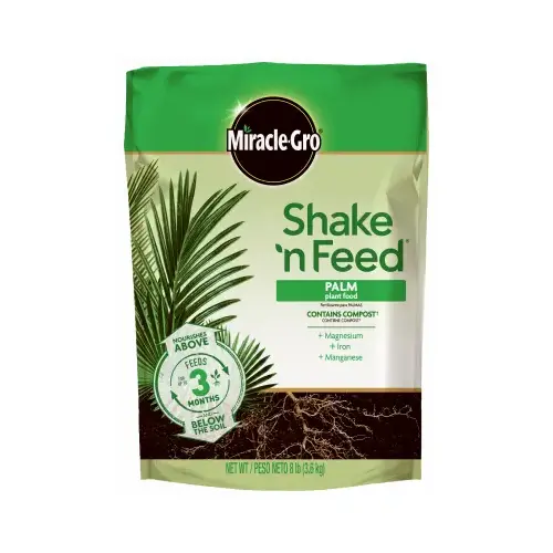 Miracle-Gro, 8 LB, 8-2-12, Shake 'N Feed Palm Food, Contains Magnesium, Iron & Magnesium To Help Prevent Fronds From Yellowing & Curling, Feeds Continuously For Up To 3 Months.