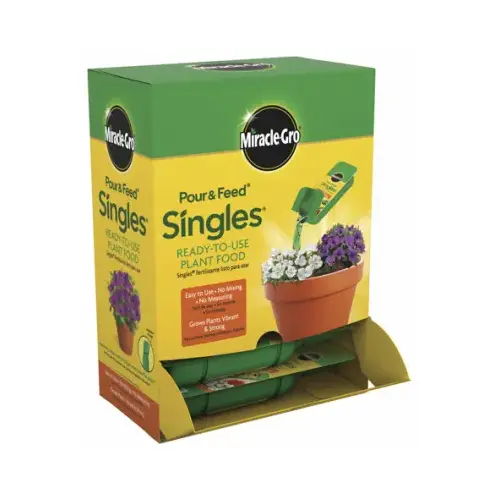 Each pre-measured Miracle-Gro Pour & Feed Singles feeds your 12 to 18 in potted plants. Simple to use - just snap open the top and pour onto the soil every 10-14 days. No mixing, no measuring and no storage required. Miracle-Gro Pour & Feed Singles make feeding easy.