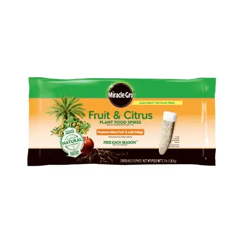 Extend the beauty of your garden to the rest of your landscape with Miracle-Gro fruit and citrus plant food spikes. Use once a season in the spring and fall, for lush foliage and palms and greater fruit production. These easy-to-use spikes provide nutrition directly to the roots, where trees need it the most and includes natural ingredients.