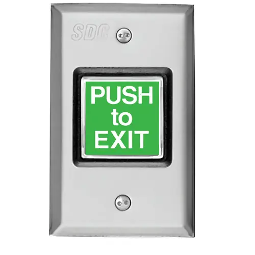 SDC 424U Push to Exit Button, Momentary , DPDT Double Pole Double Throw, Single Gang, 12/24VDC, Illuminated, Red and Green Lens Included, 630/US32D Stainless Steel