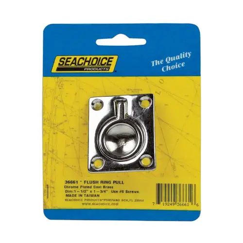 Seachoice 36661 Flush Ring Pull Chrome-Plated Brass 1-3/4" L X 1-1/2" W Chrome-Plated