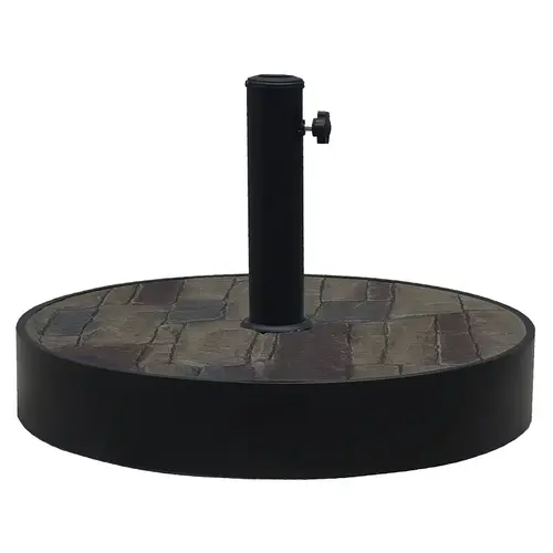Morgan Hill Umbrella Base anchors patio umbrellas securely. 40 lbs (18kgs). Attractive brown powder coated finish. Fits umbrella poles up to 1.9 in wide. Includes adaptor ring and tension knob.