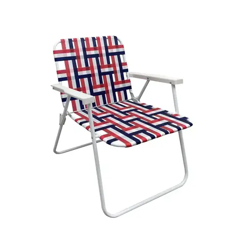 Seasonal Trends Folding Web Chair, 250 lbs Capacity, Steel/PE belt Seat, 17.72 in Seat Width, 21.65 in Seat Depth, 16.14 in Seat Height, 17.72 in Back Width, 15.35 in Back Height, Arm Height from Floor: 22.44 in, Arm Height from Seat: 7.68 in, Steel Frame, White Frame, 30.71 in Width, 23.62 in Depth, 22.83 in Height