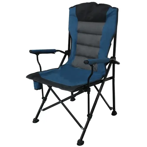 The Seasonal Trends Deluxe Padded Folding Camping Chair is built for convenience and comfort. This easy to fold chair comes equipped with a built-in cup holder and a side storage pouch for snacks and small electronics. This premium chair has a padded seat, padded backrest that is extra tall, and padded armrests. It is made of a strong powder-coated steel frame that allows for a 300 lb weight capacity. Sit back, relax, and enjoy as this chair takes comfort to a new level.