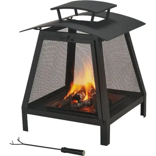 Measures 21-3/4 in L x 21-1/4 in W x 28-3/8 in H. Includes one mesh lid, one steel wire grid and one poker.