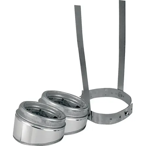 Can be used for fixed offsets of 15 deg slope or in pairs for offsets adjustable from zero to 30 deg slope. Greater angles are prohibited by UL standard 103 and by the terms of the product listing. Required locking bands (2 packaged with each elbow kit) allow 360 deg rotation and lock the components together in place at the exact offset required. Insulated elbows can be used at the same 2 in air space clearance as chimney sections. Includes 2 elbows, 2 locking bands and interior resupport.