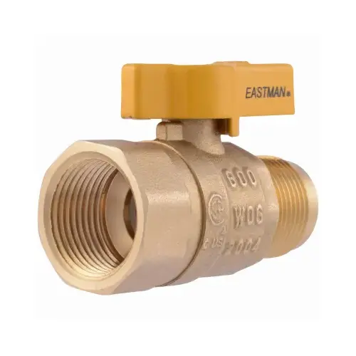 5/8 Flare x 3/4 FIP Straight Gas Valve Bag. The Eastman Straight Flare Brass Gas Ball Valve is for safe use with liquified petroleum gas, LP gas, and air mixtures up to 175 PSI. The gas ball valve is made of brass construction for a strong, durable connection. The valve is in-line for connecting two pipes going in the same direction.