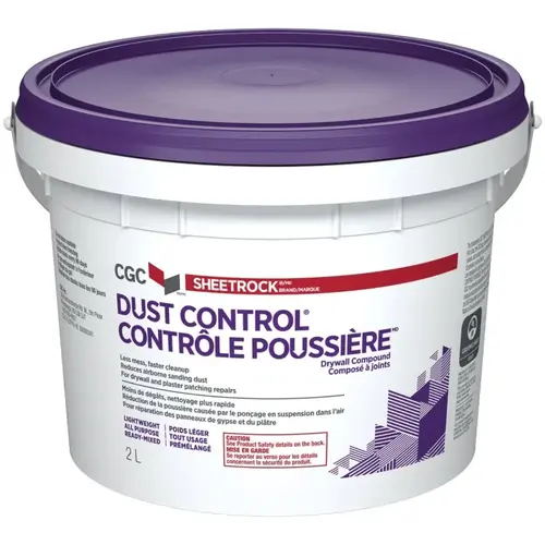 CGC Sheetrock brand Dust Control drywall compound is a revolutionary product that reduces the mess associated with sanding drywall compound. CGC Sheetrock brand Dust Control drywall compound goes on the wall as well or better than other leading drywall compounds, with the added value that when sanding most of the dust falls straight to the floor and doesn't float around in the air. It is an all-purpose compound that can be used to embed tape, fill and finish gypsum panels, bead, trims and fasteners. It can also be used for skim-coating over dry and non-glossy surfaces.